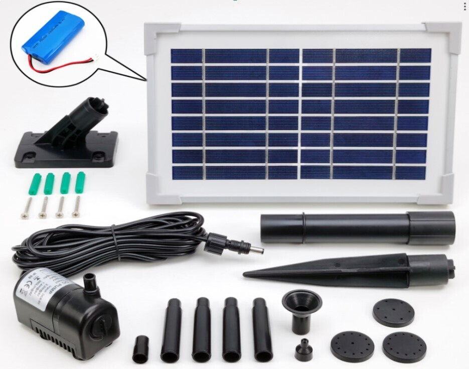 The battery power comes from Fe-Li batteries (1500mAh) and are charged in sunlight hours via the solar panel