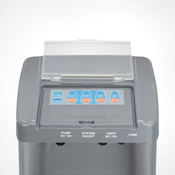 The pump and ancillary products using the battery will need to be turned off to re-charge the battery to full via the solar panel